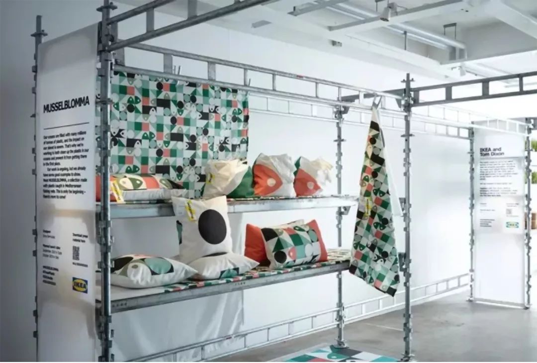 2019年的宜家民主设计日中,公布了不少为可持续生活所做的努力。MUSSELBLOMMA 慕色隆系列使用聚酯布料源自回收的塑料,包括西班牙渔民在地中海打捞的塑料废弃物。