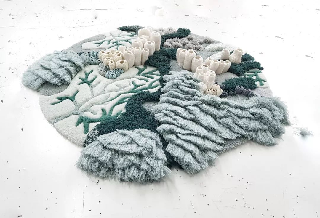 她利用完全被废弃的纱线,编织出一幅幅以海洋与珊瑚为主题的艺术品,比如首个羊毛纱线系列作品《CUSTOMIZED RUGS》
