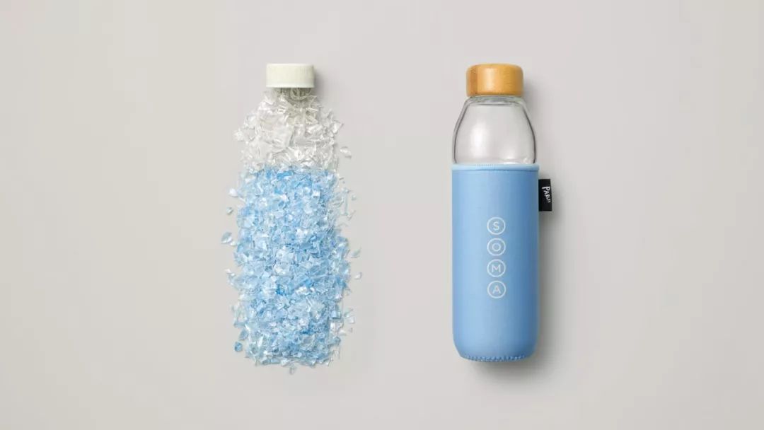为了降低塑料瓶用量,Parley与soma为这个杯套专门配置了一个不含BPA的可重复使用玻璃瓶,还配备了天然竹子材质的防漏杯盖。整体重量轻且耐用,可以装17盎司(约0.48升)的液体,专门在星巴克限量发售。
