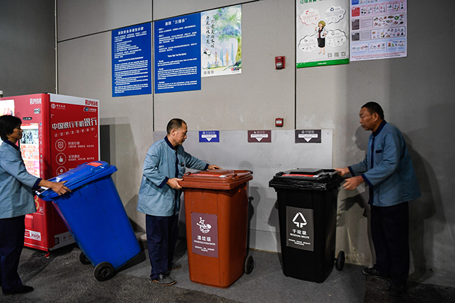 据相关负责人介绍,预计第二届进博会期间,场馆内产生的垃圾总量将达到200吨左右。考虑到外国参展企业和外籍人士的需求,市容环境组特地在这里的80个垃圾分类投放点,贴上全英文和中文两套“上海市生活垃圾分类投放指南”,部分垃圾投放点还将分派懂外语的志愿者提供服务。
