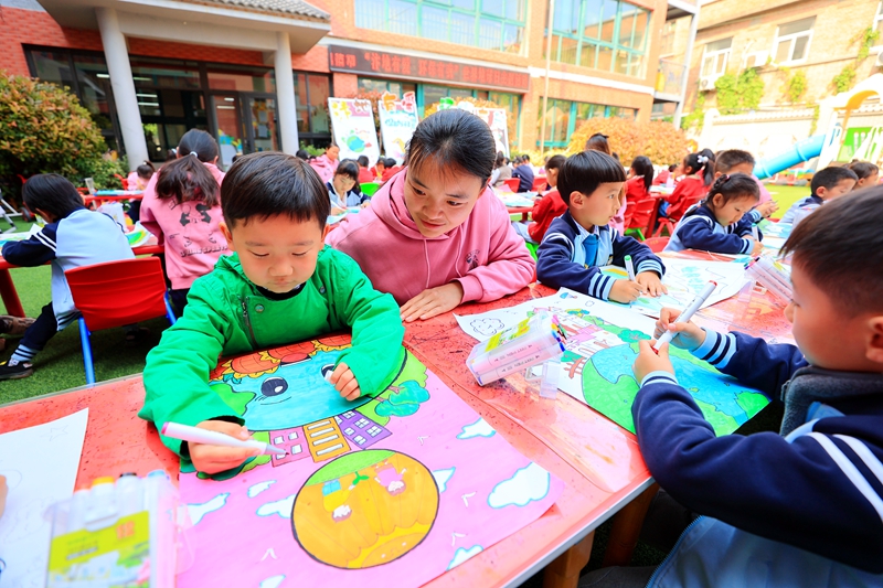 2022年4月19日,开封市新街口幼儿园以世界地球日为契机,开展了“汴地有爱 环保有我”为主题的绘画活动,园教职工从身边的小事做起,和孩子们一起行动,共同保护地球母亲,携手共建美好和谐的绿色家园。