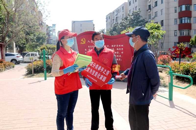 4月20日上午,在开封市城乡一体化示范区金明池街道金康苑小区,开封市环卫局、开封市供销合作社、开封市生态环境局、开封市志愿者协会等单位组织志愿者,通过设置展板、宣读倡议书、发放宣传页等方式,深入宣传垃圾分类知识,培养居民的垃圾分类意识,使其逐渐成为每个人的共识。